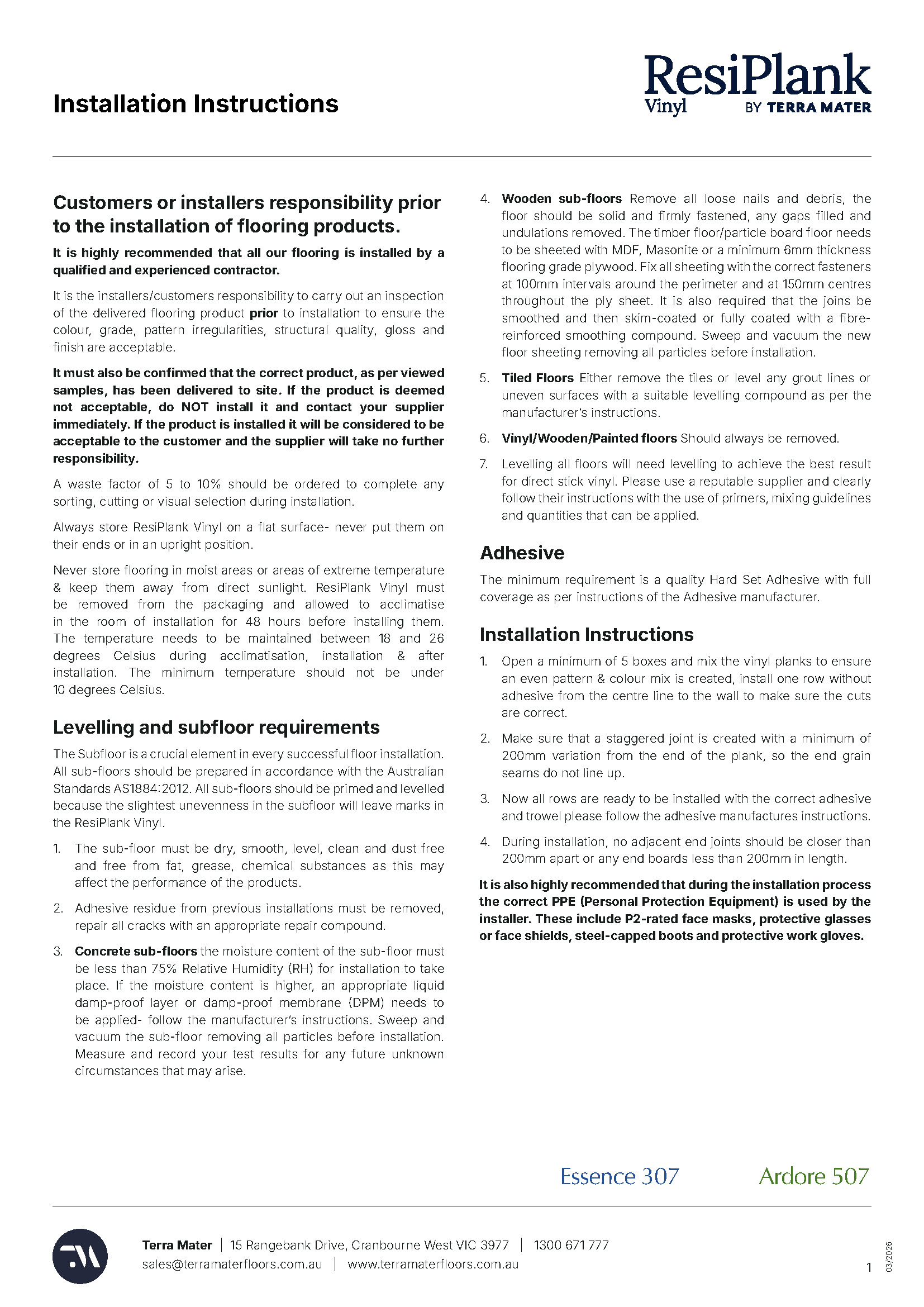 Address: 15 Rangebank Dr, Cranbourne West, VIC 3977, Monday ā Friday 9.00am ā 5.00pm, Call us: 1300 671 777, Email us: sales@terramaterfloors.com.au
