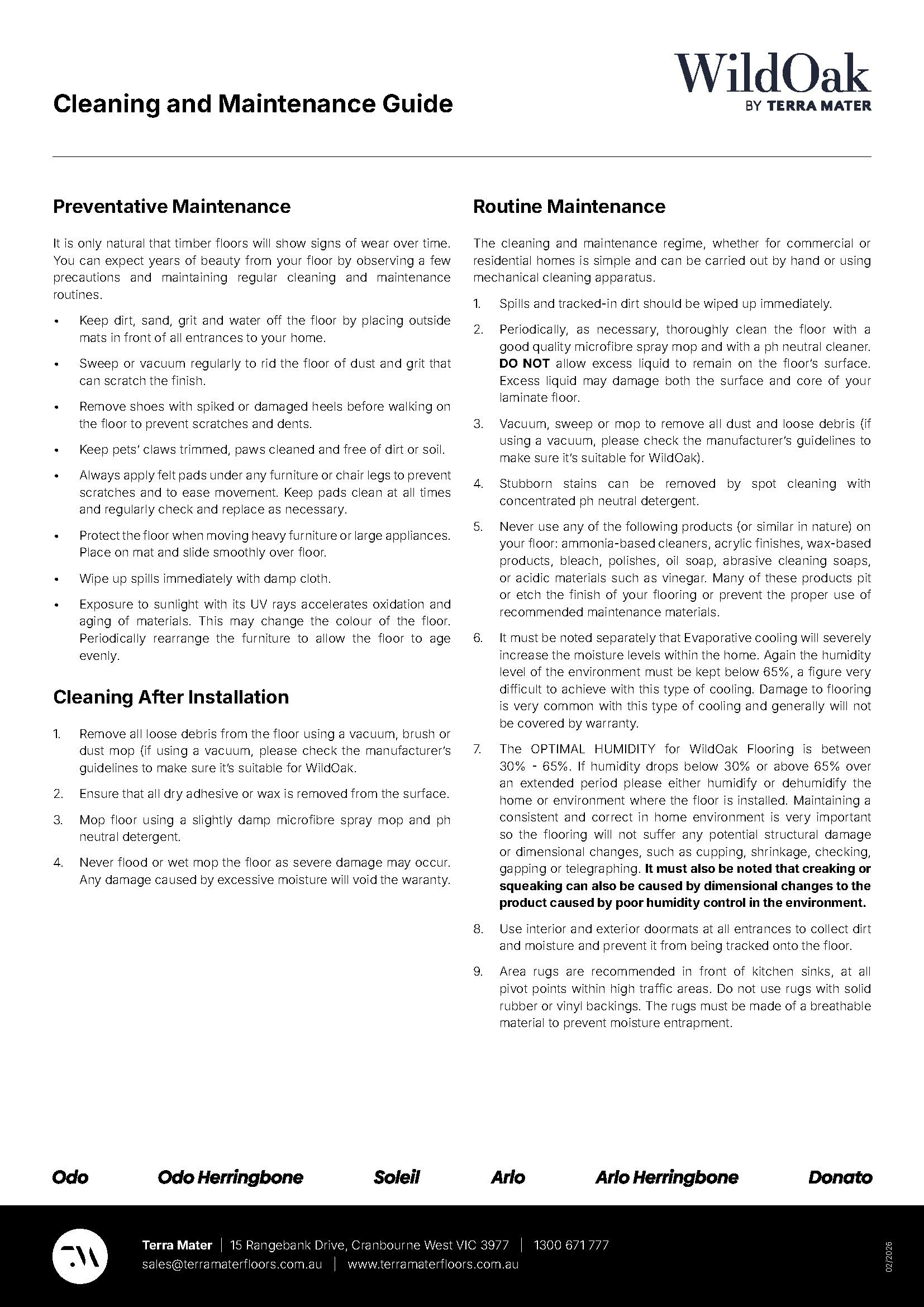 Address: 15 Rangebank Dr, Cranbourne West, VIC 3977, Monday – Friday 9.00am – 5.00pm, Call us: 1300 671 777, Email us: sales@terramaterfloors.com.au